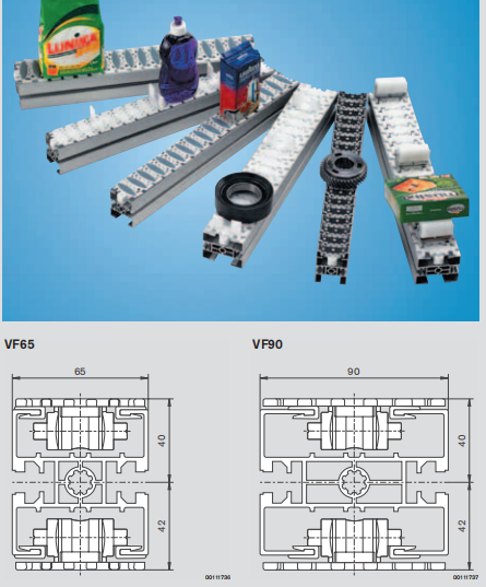 VarioFlow 这种新的力士乐链板输送系 统具明显的优点:它在拥有比常规链板 输送系统更好的技术性能的同时经济性 更好。 由于链板特别稳定,所以VarioFlow 的链板拉力可达 1250 N (防静电款式: Fmax = 400 N ! )。由于链板表面几乎完全 封闭,所以即使是很小的部件也能顺利 输送。利用力士乐齐全的链板产品系列 能够方便地完成不同的输送任务。 VarioFlow 是一种适用于多种应用范围 的经济型输送系统。65 mm 和 90 mm 两种链板宽度适用于不同的应用:从机 械制造业、电子工业到化妆品行业随处 可用。